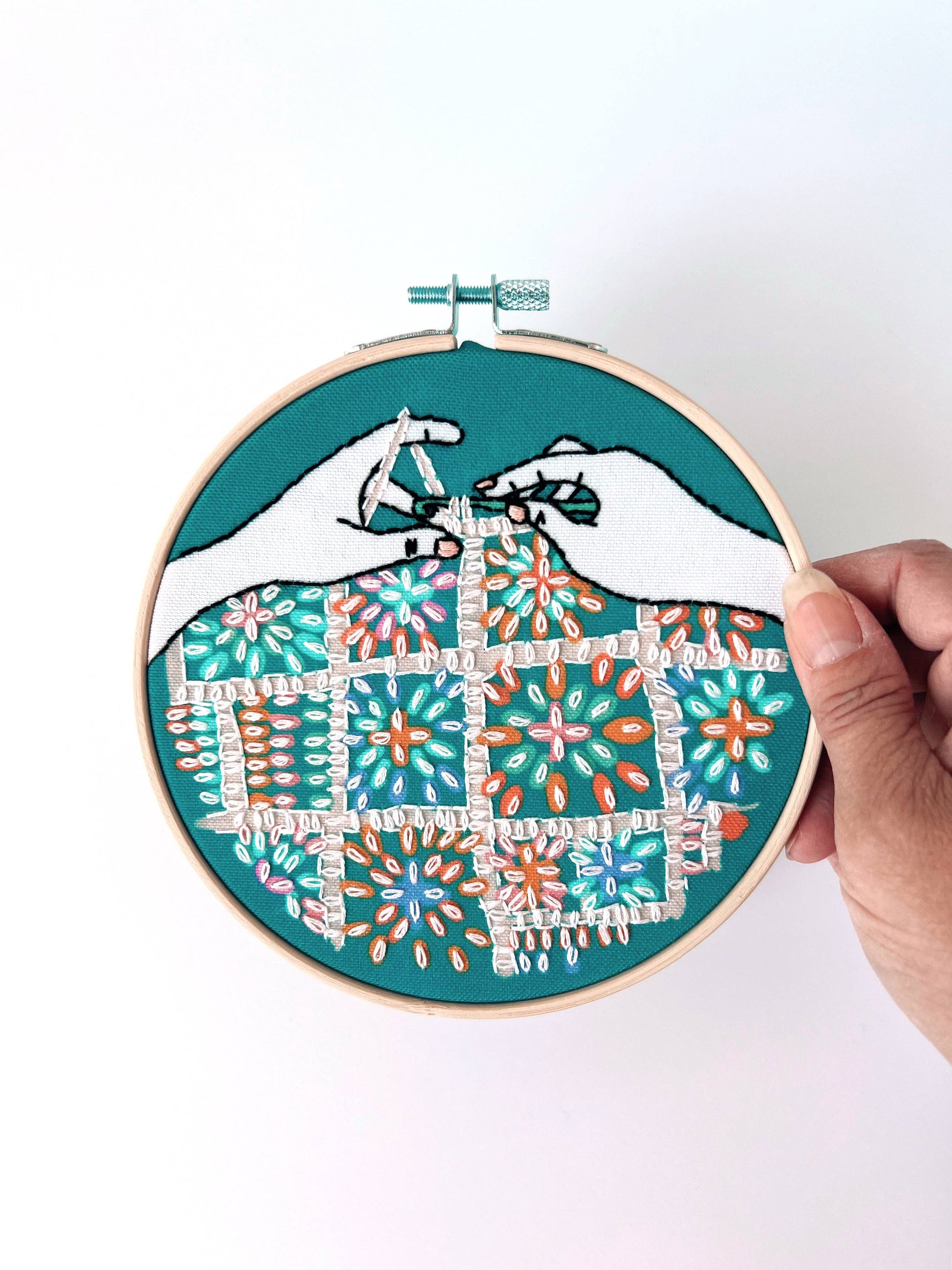 Get hooked on our Crochet Embroidery Kit! This vibrant kit is perfect for lovers of both crochet and embroidery, featuring bright colors on a deep blue-green background.