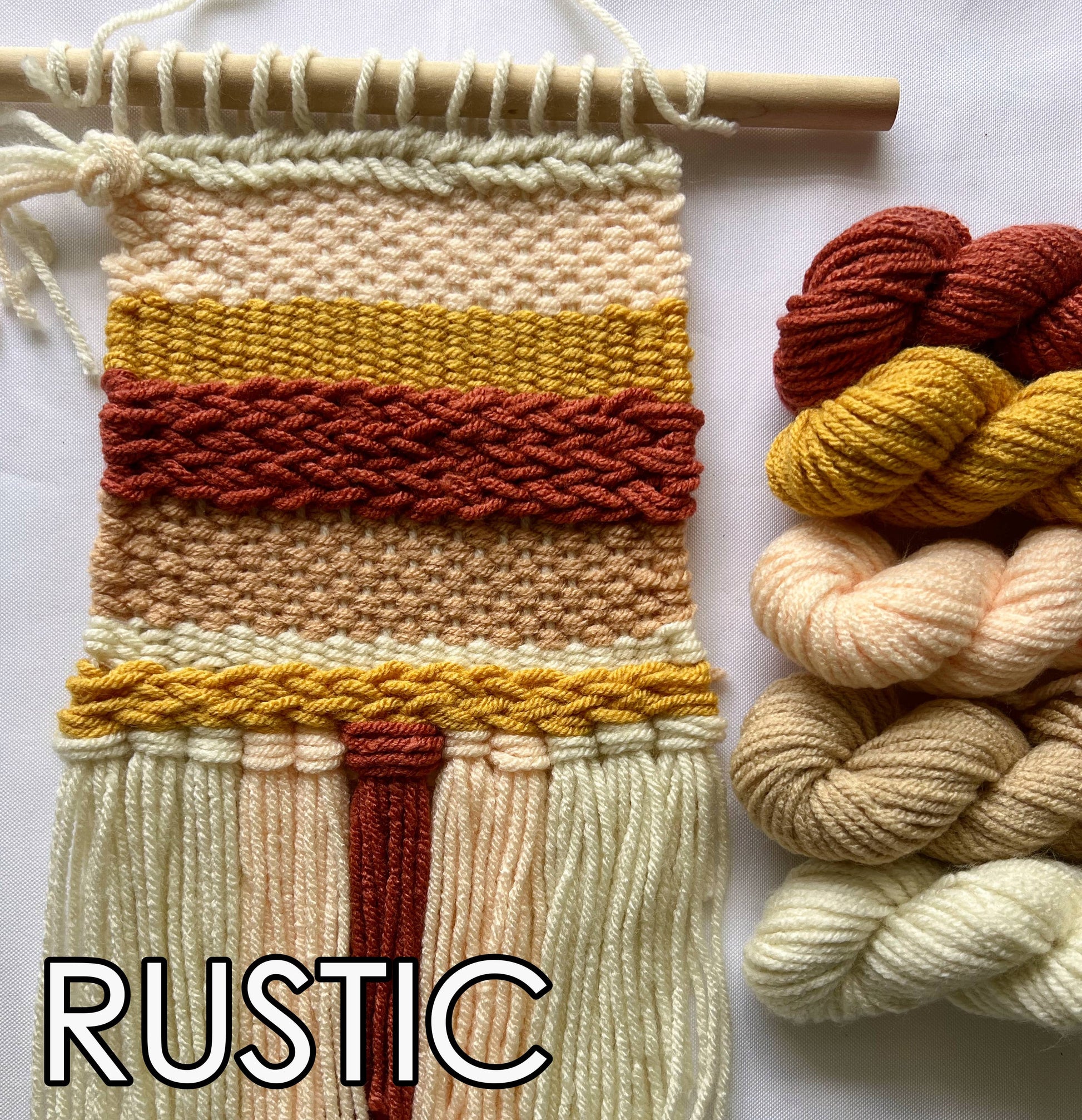 Includes: Pop out loom (8.5"x11"), 10" wooden dowel, and full instructional with a step by step process as well as many weaving techniques.
