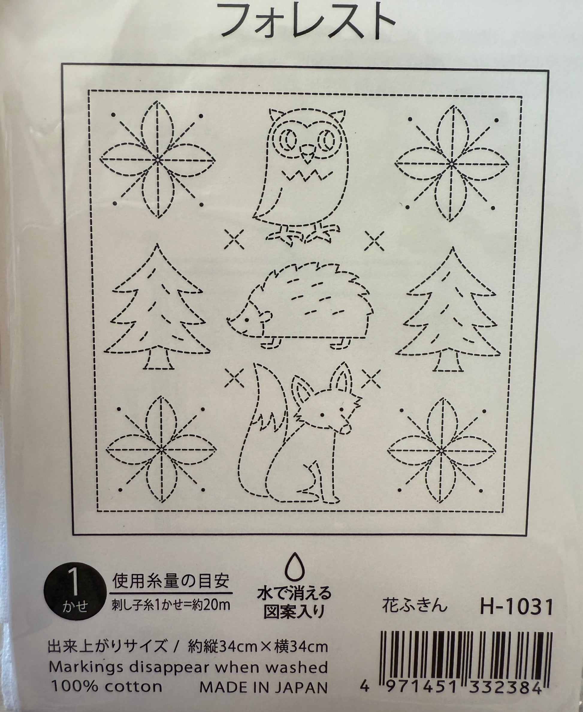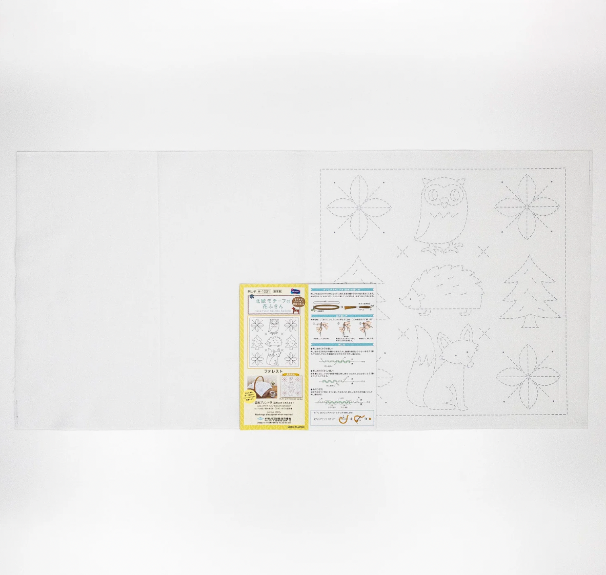 Sashiko Sampler Forest makes it easy to practice your stitches and then wash away the pattern when done! The pattern is made of cute forest animals and plants, and the finished project size is approximately 12 x 12 inches, and can be used in a variety of projects, from cushions to coasters, tote bags or visible mending.