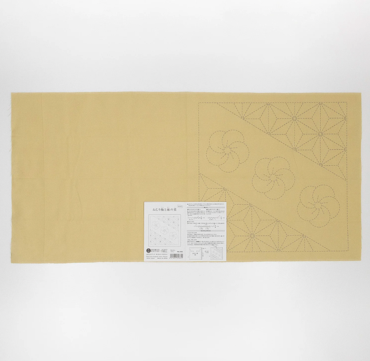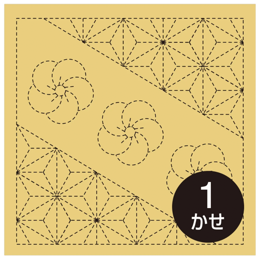 Sashiko Sampler Twisted Plum and Asanoha includes just the preprinted soft mustard yellow cotton fabric. Needle and thread must be purchased separately.
