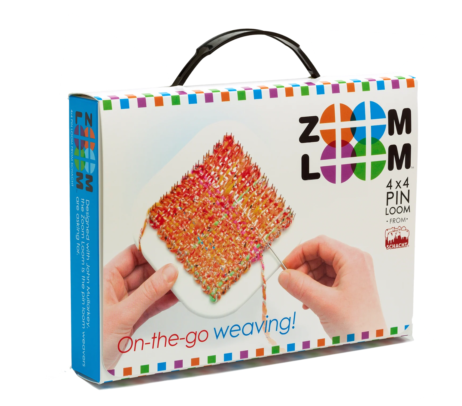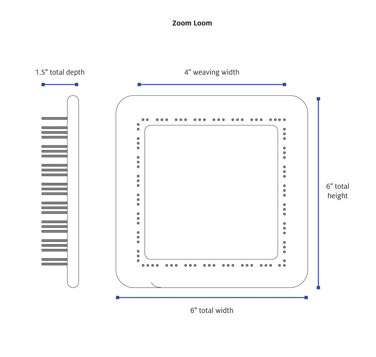 If you've ever woven on a pin loom, you'll love this new and improved model. The compact Zoom Loom packs into its carrying case with its needles and instruction booklet. Use the included 6" weaving needle to make squares and the 3" needle to join them. Plain squares are sett at 9 ends per inch/picks per inch.