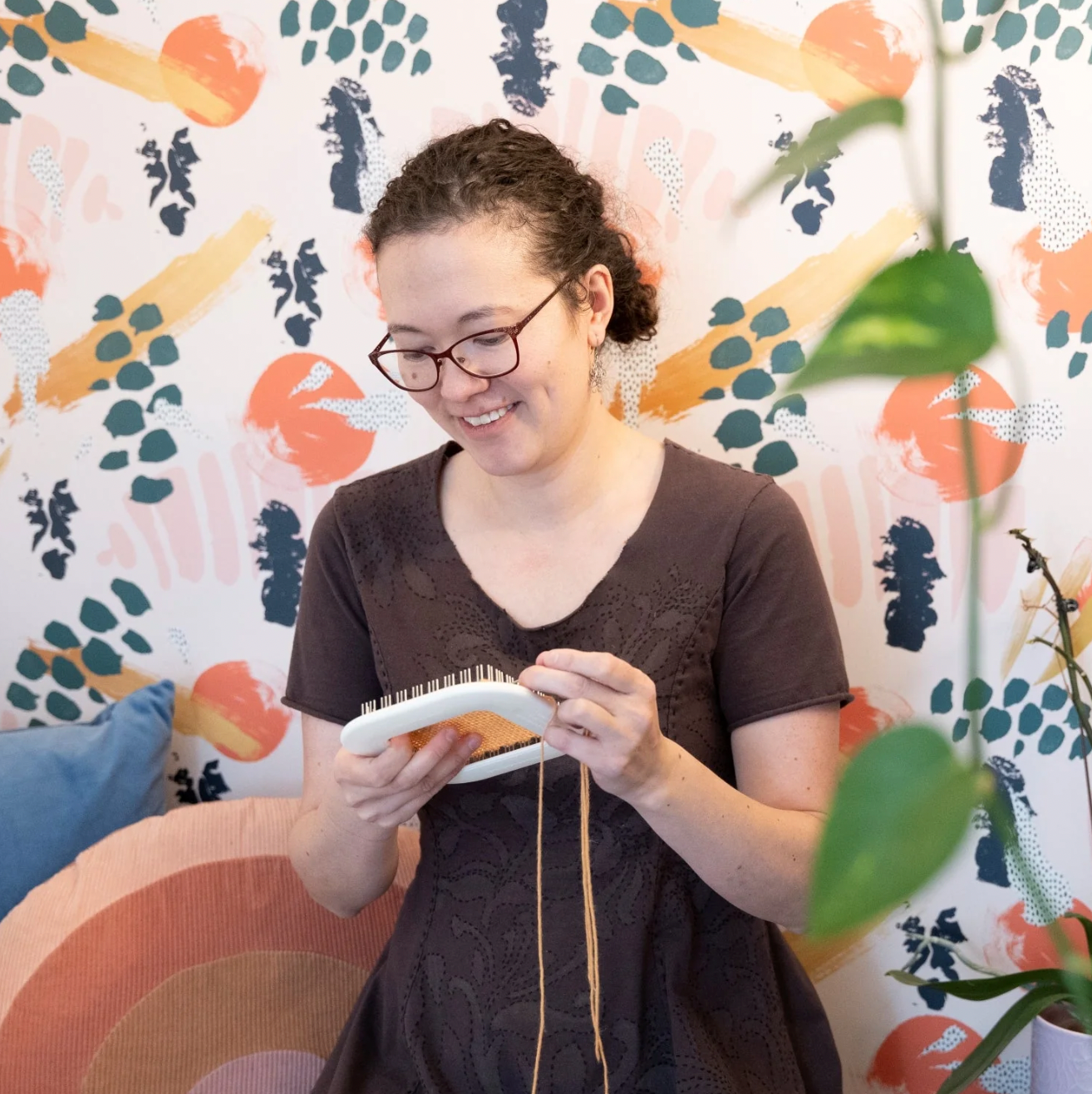 Weave wherever inspiration strikes! This palm-sized pin loom makes beautiful 4" squares you can turn into wearables, home décor, toys, or gifts. Big creativity, small package.