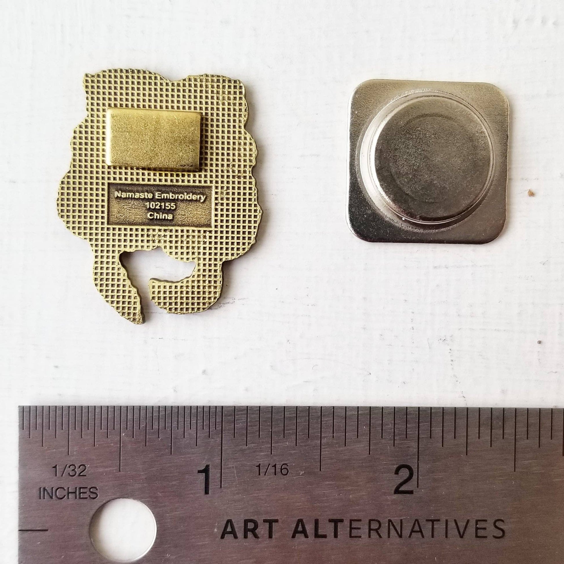 Keep track of your needles with this adorable sea otters needle minder! This sweet magnetic pin is 1.25 inches tall and is made of hard enamel with pretty raised antique gold colored plating. The back has a removable magnet for you to sandwich your needlework fabric.