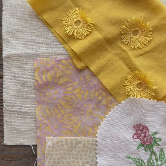 - An assortment of curated fabric pieces, trims, and buttons, including hand-dyed options for a vibrant touch*